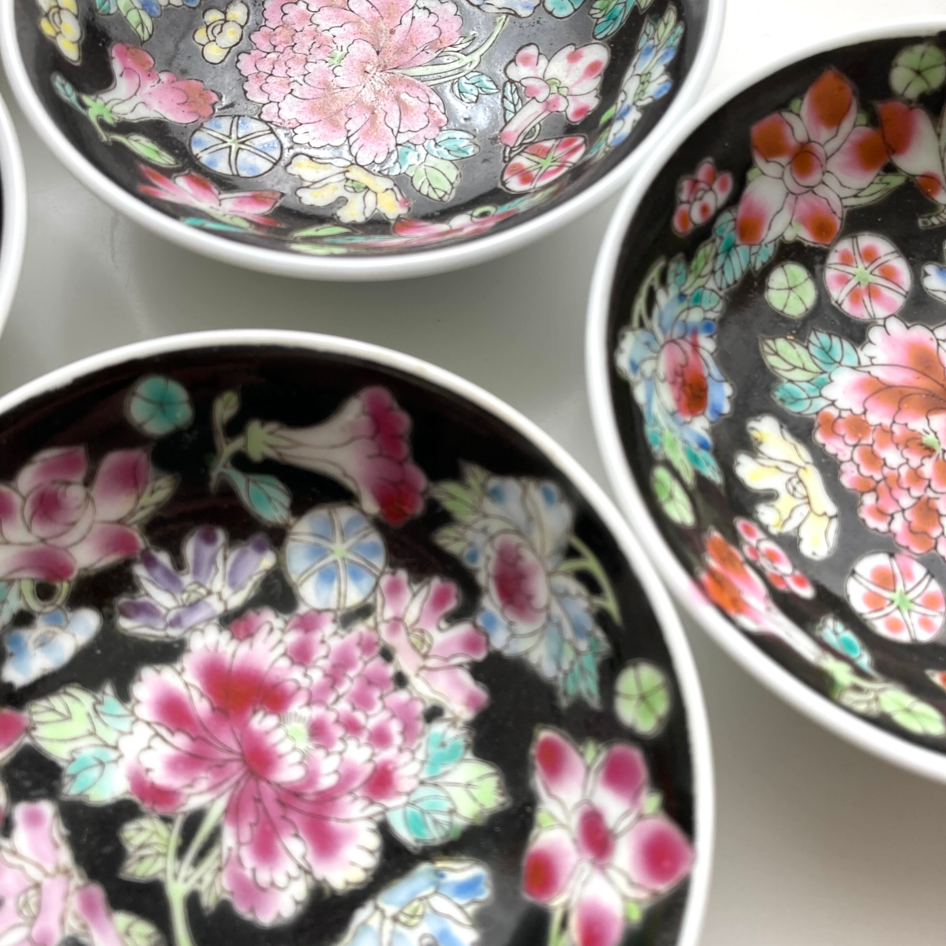 粉彩洋蓮10cm平皿#黒(80年代景徳鎮デッドストック)
