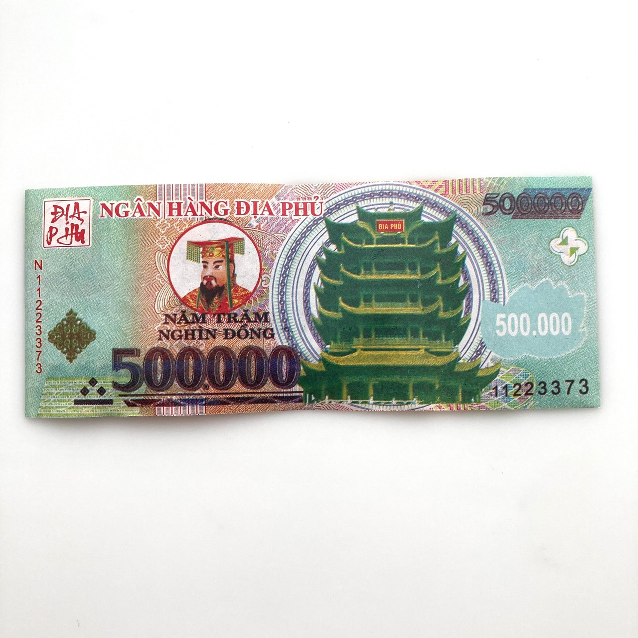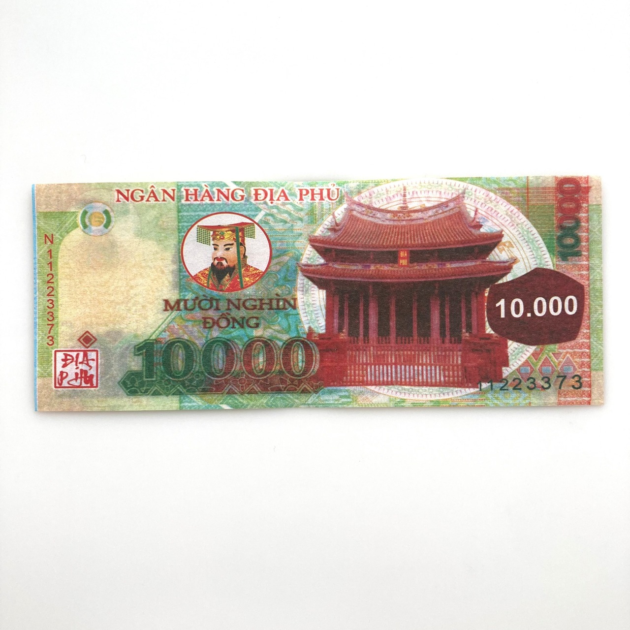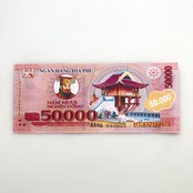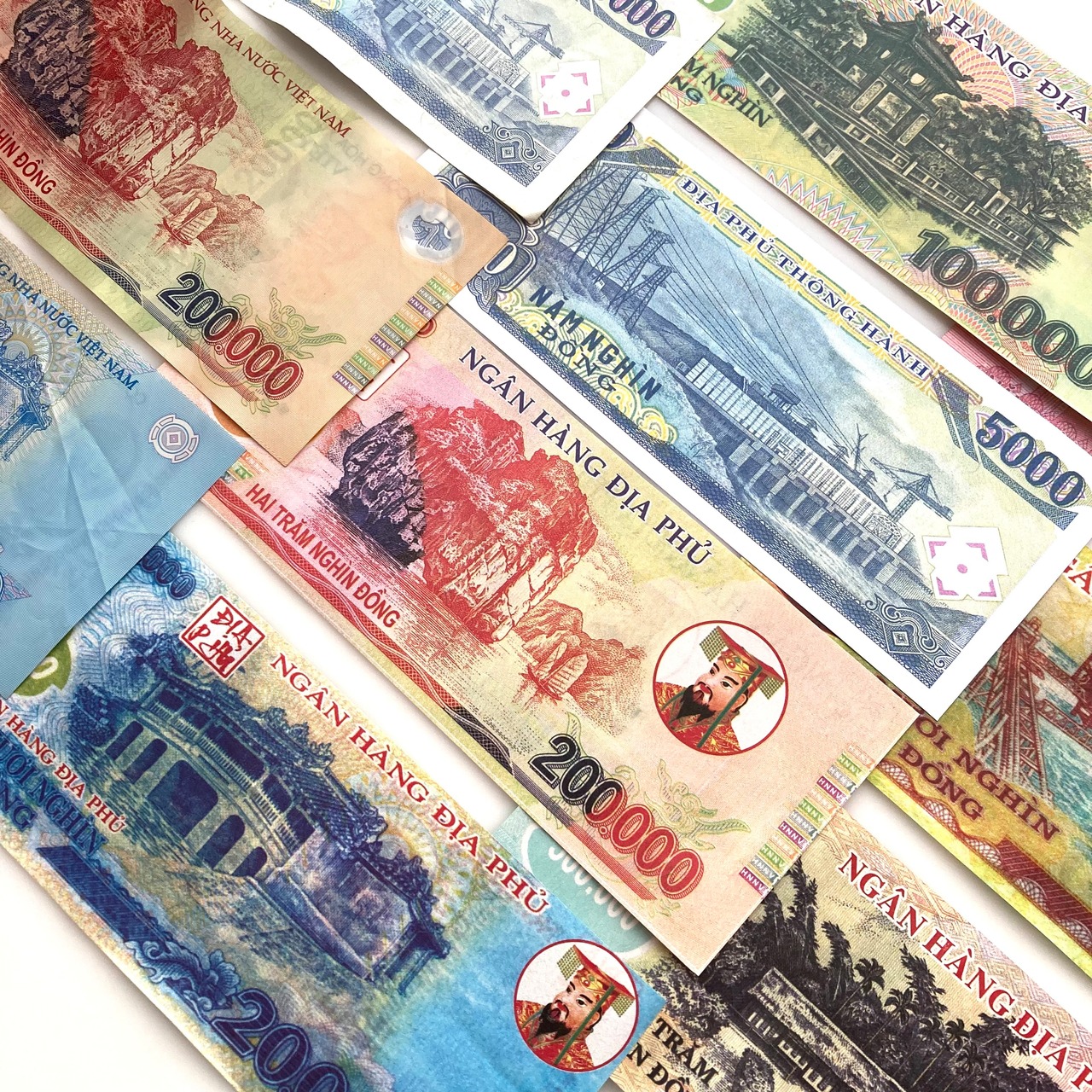 本物のVNDには最小紙幣から順に100/200/500/1,000/2,000/5,000/10,000/20,000/50,000/100,000/200,000/500,000までの12種類が存在しますが、こちらのベトナム冥土銀行券は5,000始まりの7種類をワンセットとしてお届けします。(計VND885,000、日本円換算で¥5,189相当)