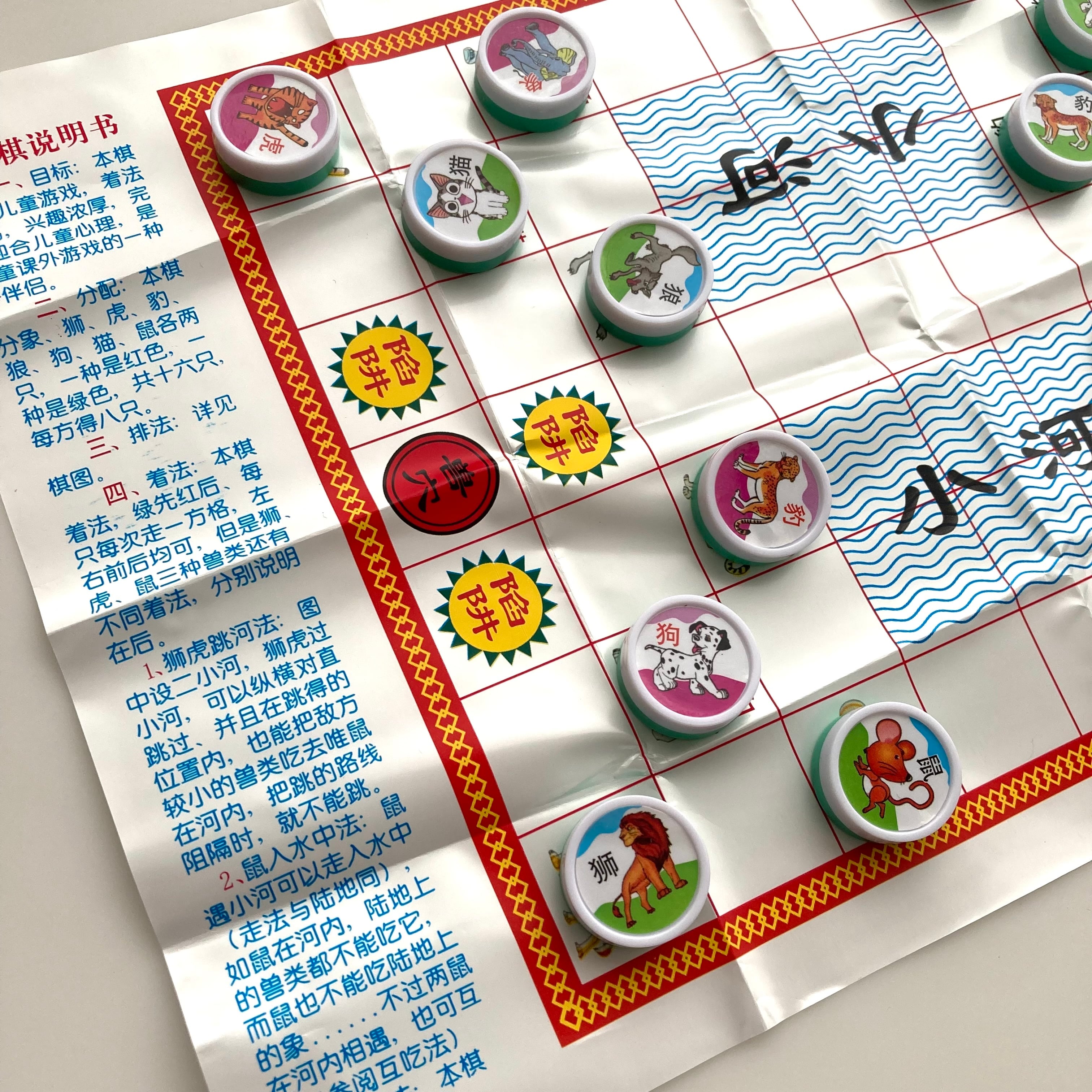 プレイヤーは8種類の動物コマを使い、相手の陣地の「獣穴」に先に到達するか、相手のコマをすべて奪うと勝ちというもの。