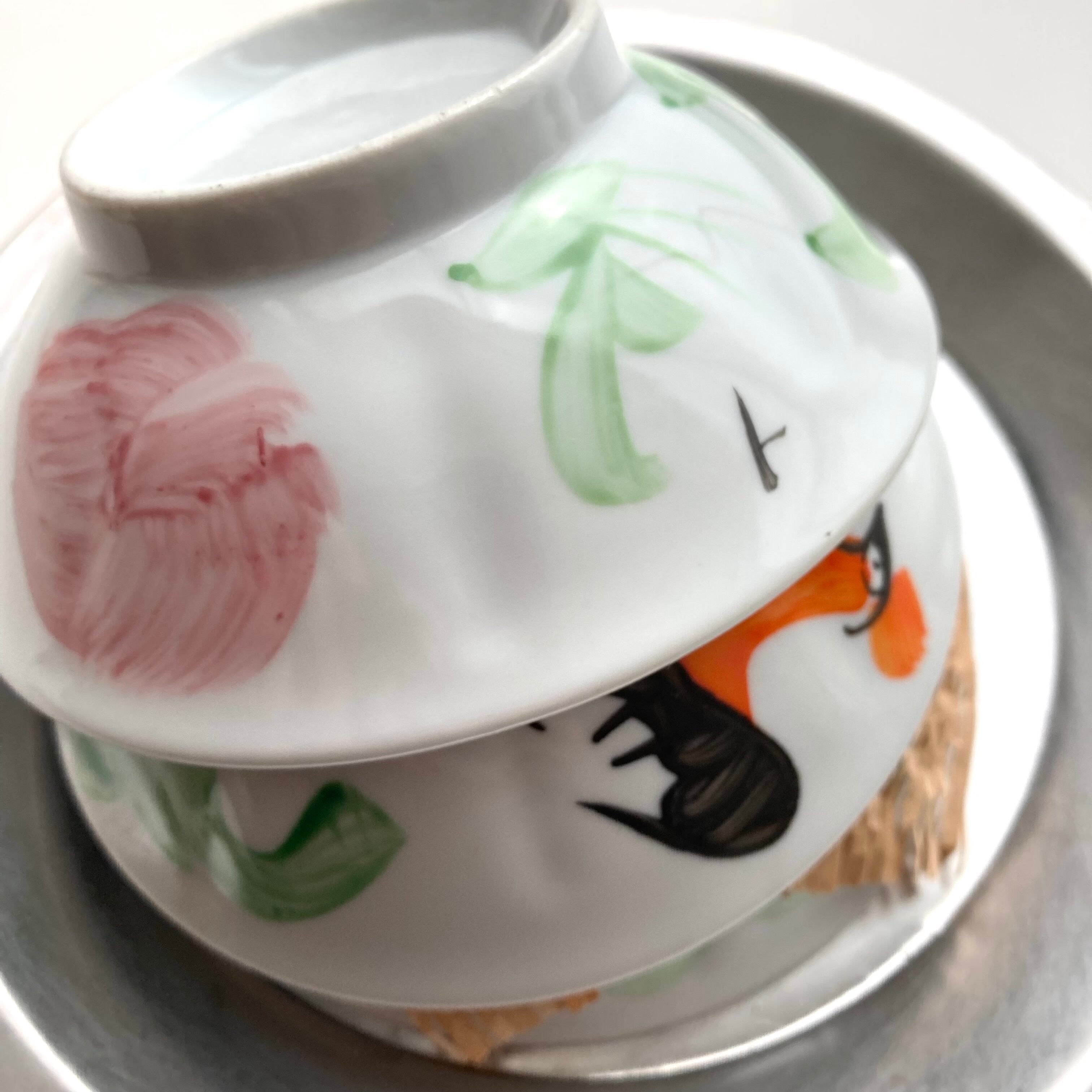 今から約40年前、1980年代製の糖水碗で、ハンドペイント特有の筆圧の変化によりそれぞれの表情が全て違います。