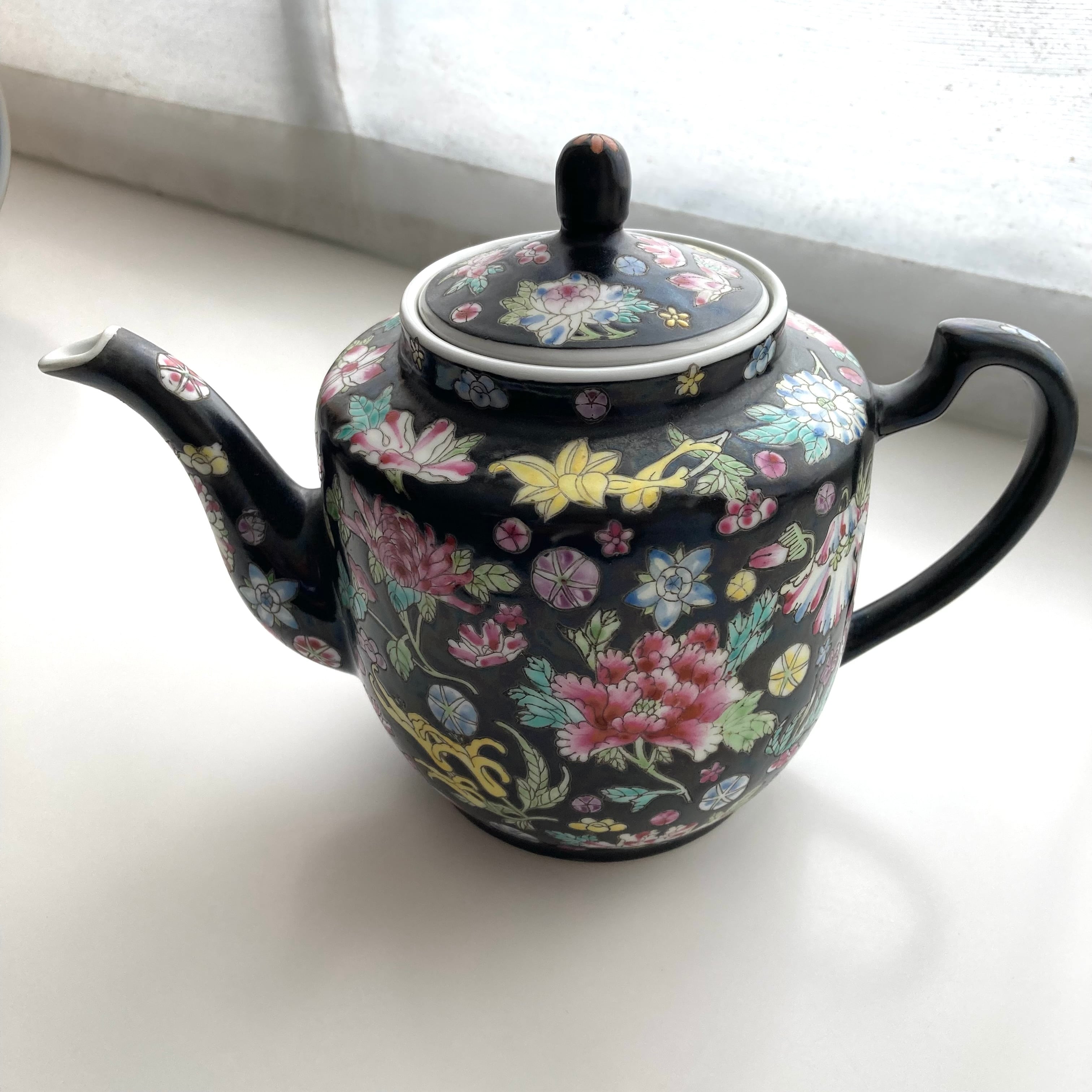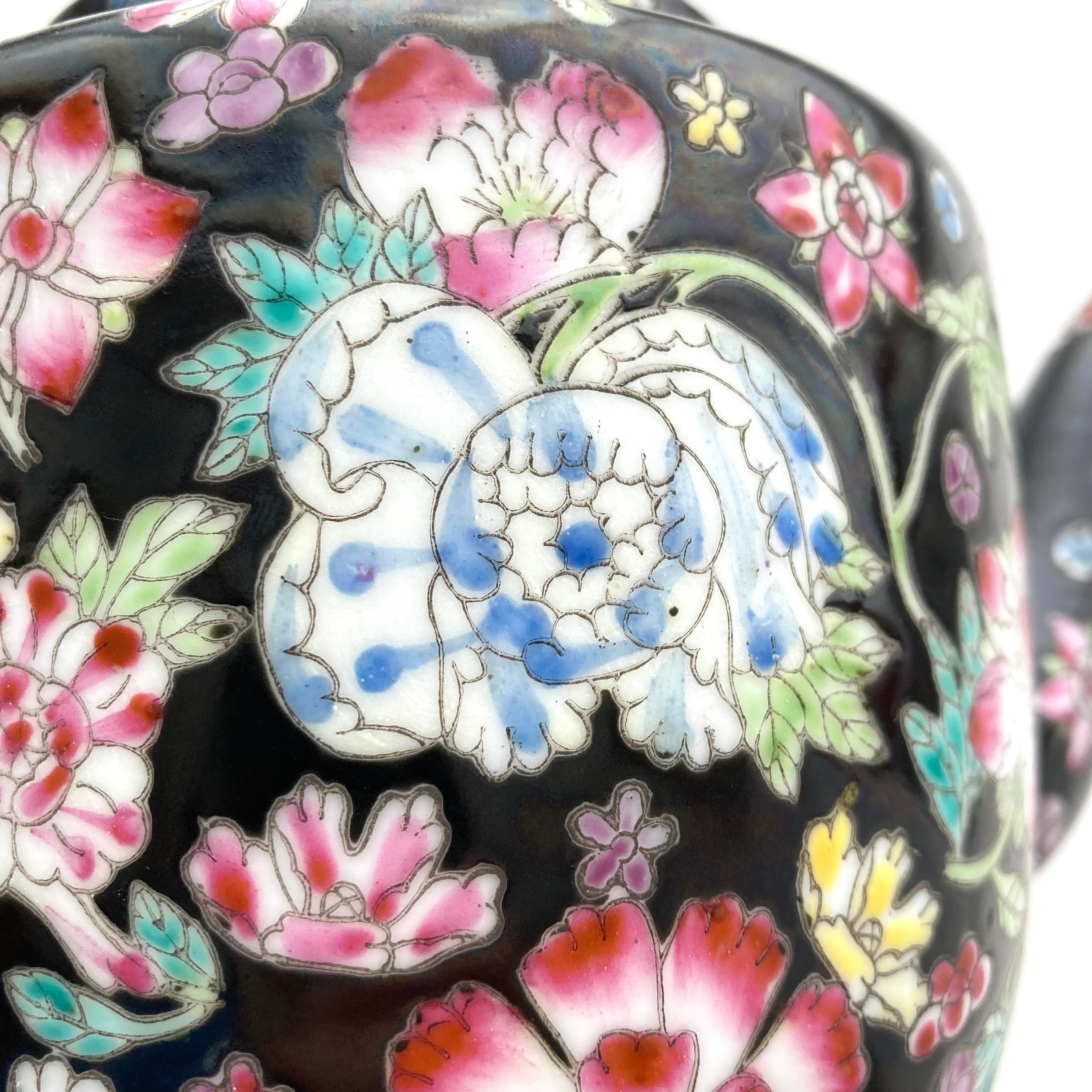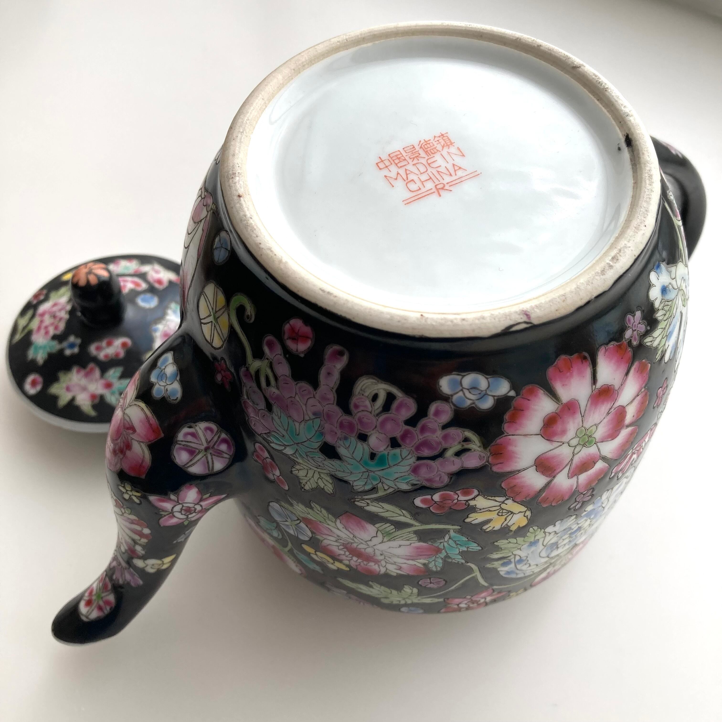 1980年代製の景徳鎮、黒の粉彩シリーズ。