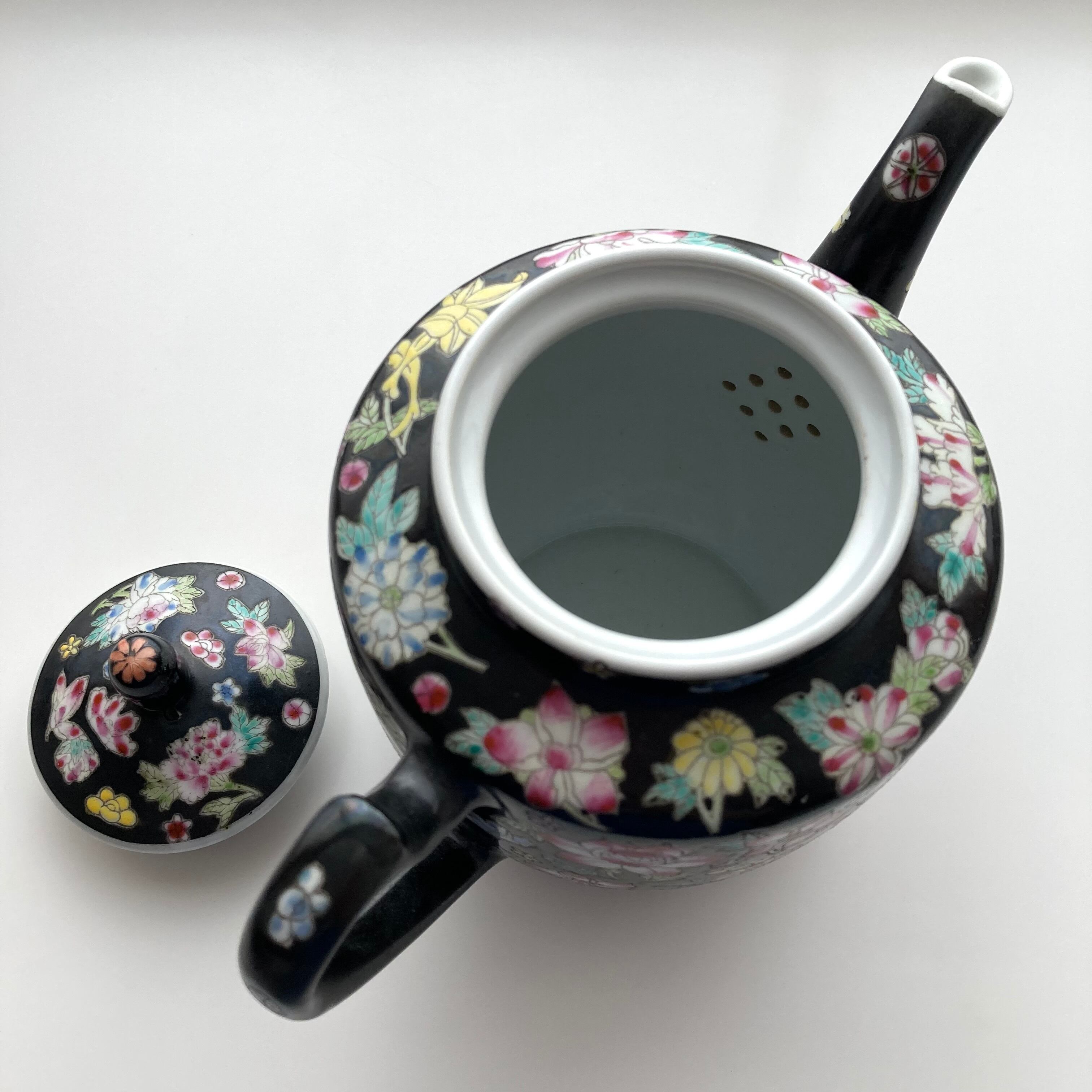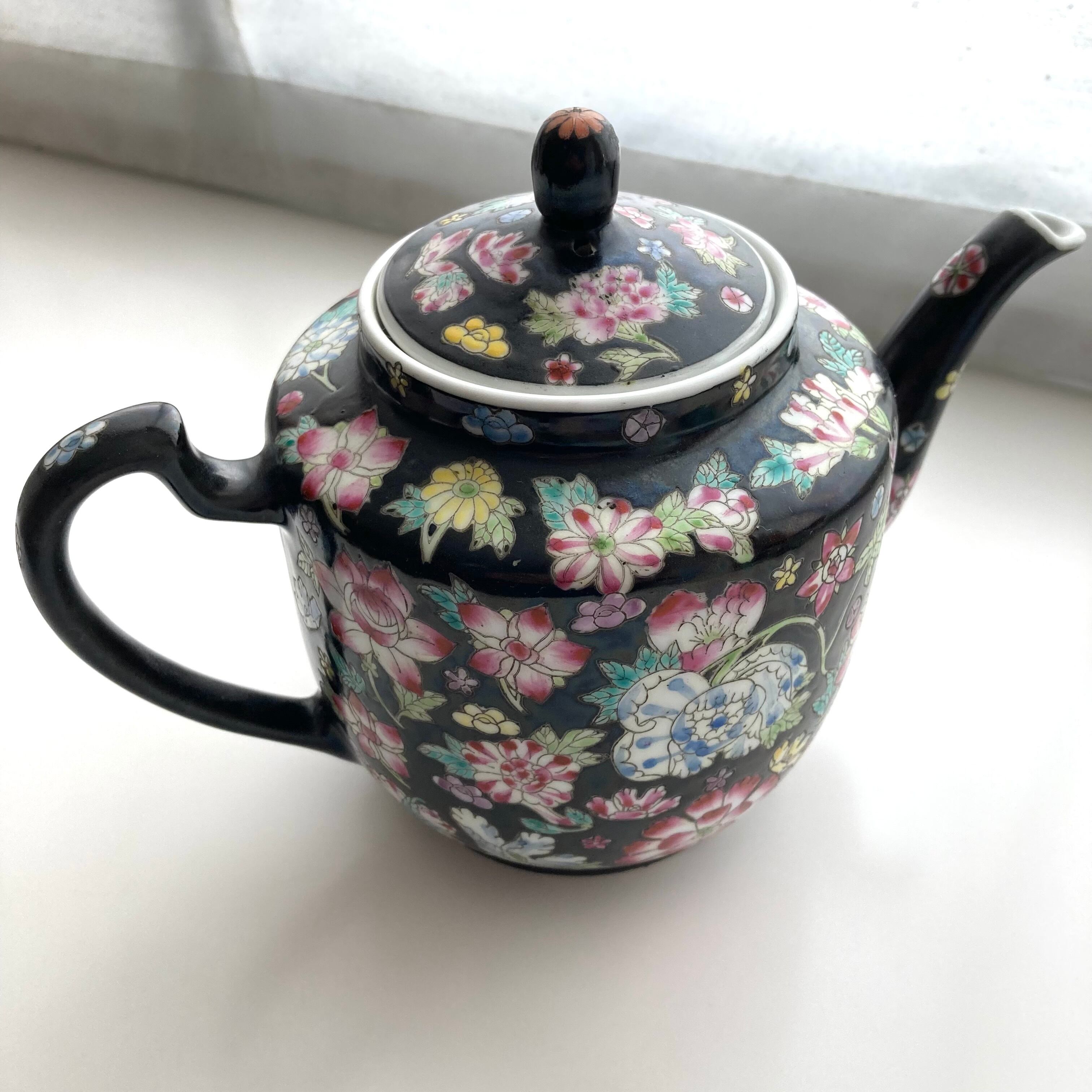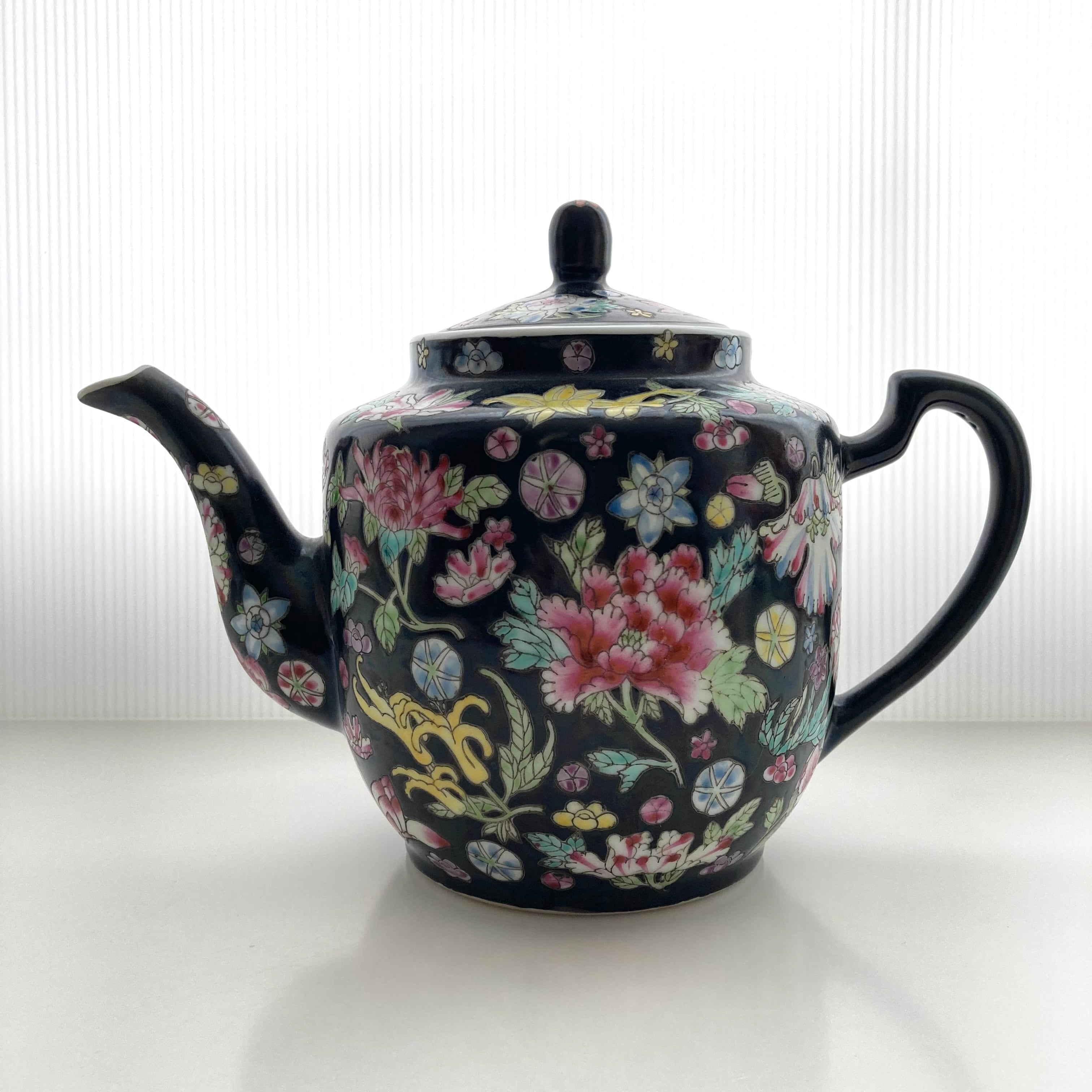 1980年代製の景徳鎮、黒の粉彩シリーズ。
