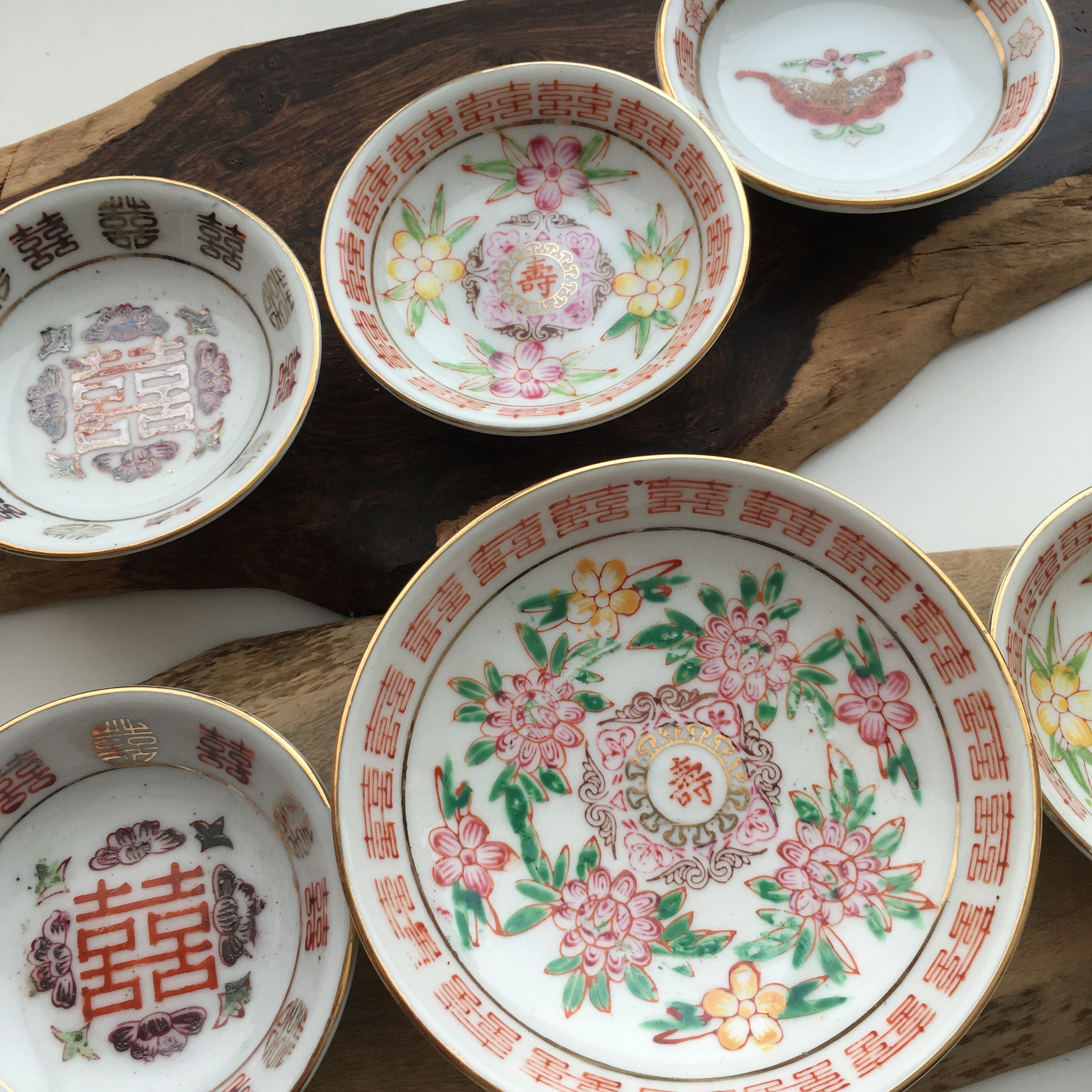 印判と彩色による絵付けの「囍囍萬寿」シリーズです。
