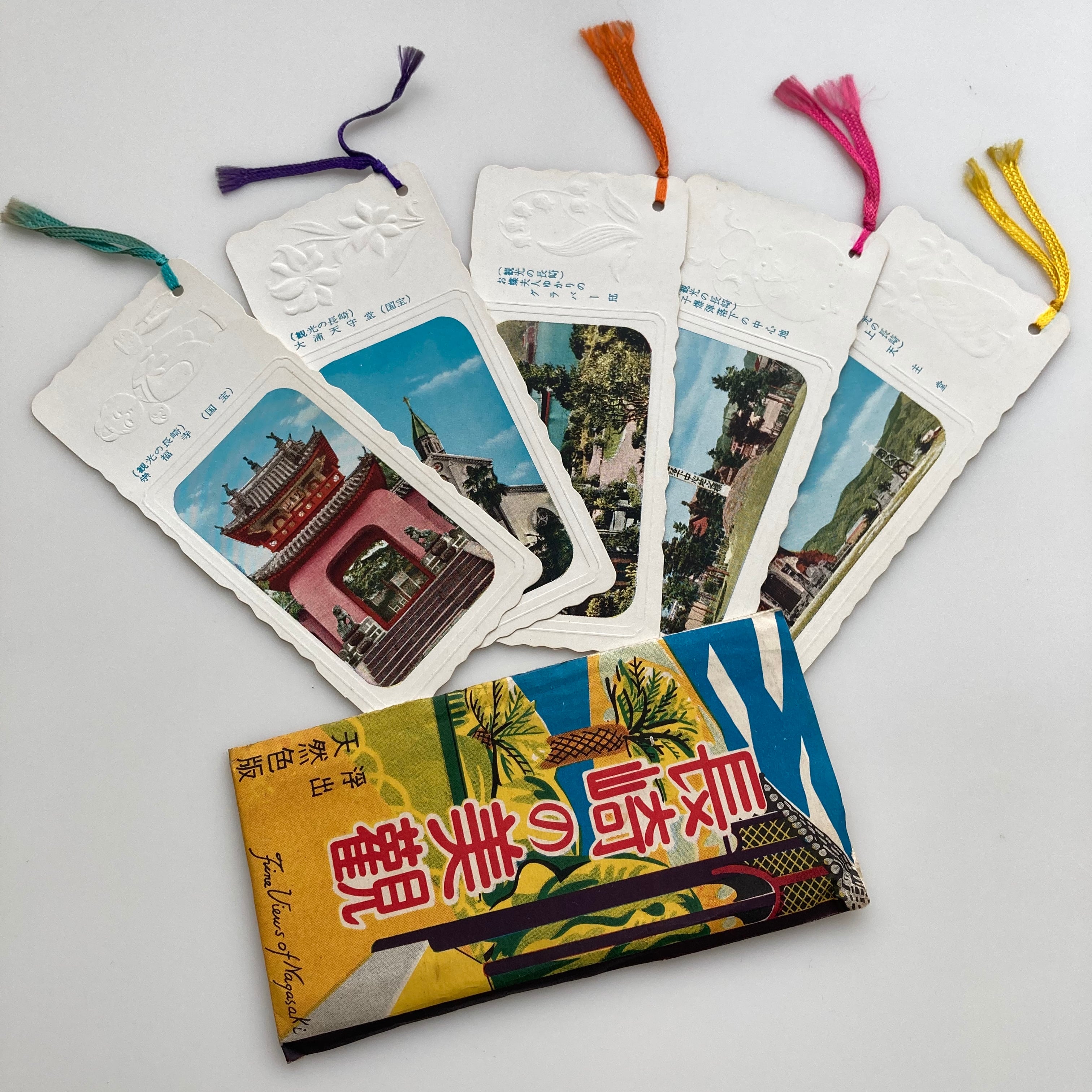 旅のしおりはご当地をモチーフにしたパッケージ(タイトル袋)と、5箇所の周辺名所(5枚のしおり)で構成されています。