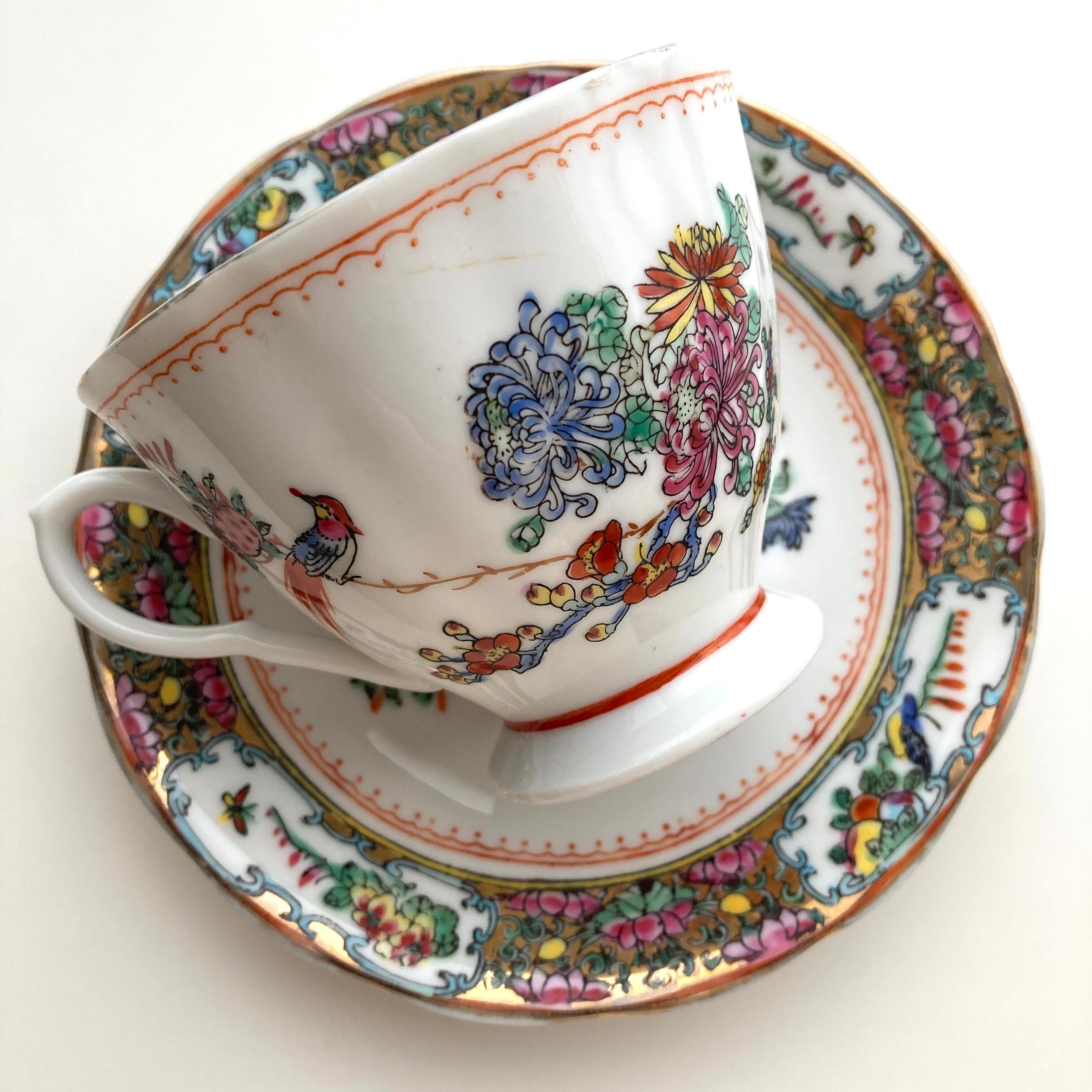 カントンカップ&ソーサー(80年代廣彩デッドストック)