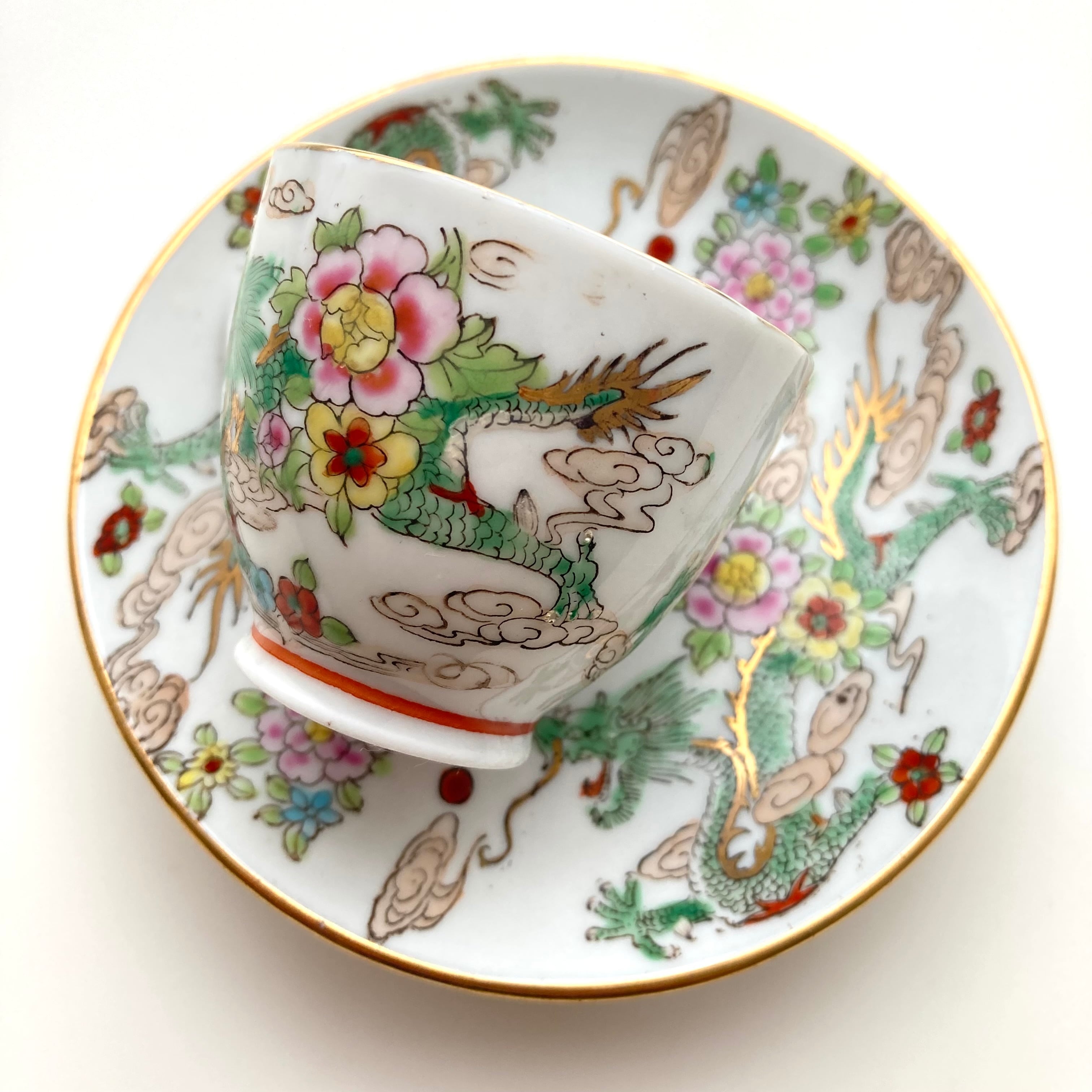 今から約50年前、文革瓷として西洋社会へ輸出されることを前提に製造された70年代中国制造のカップ&ソーサー。