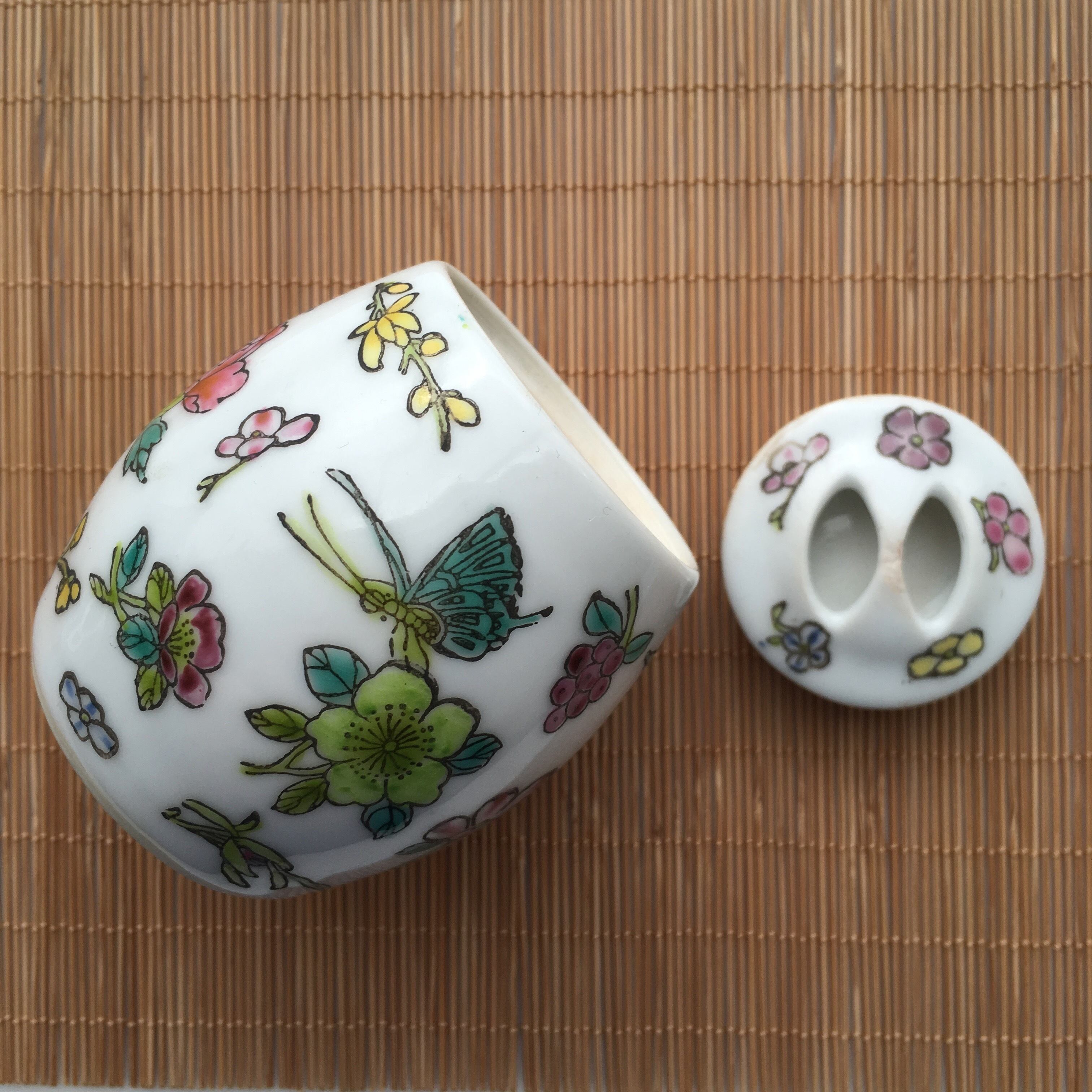 粉彩俵壺・バッタ柄(80年代景徳鎮デッドストック)